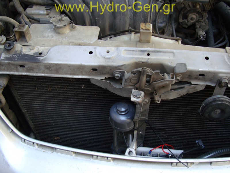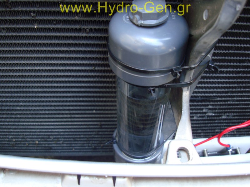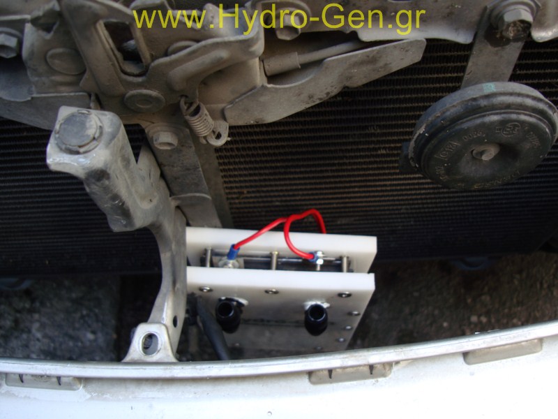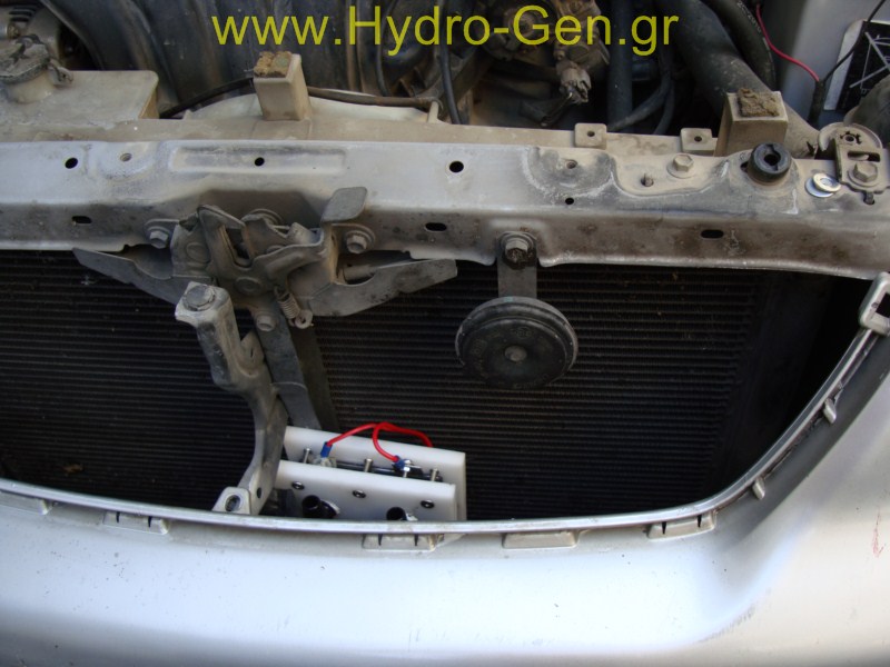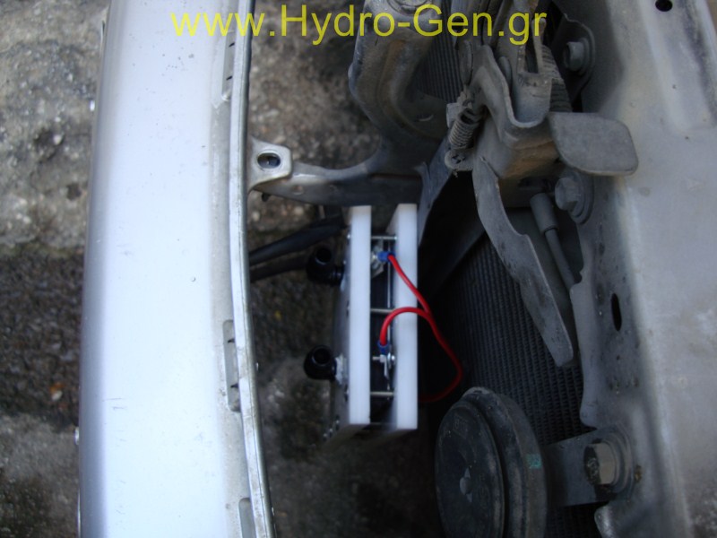 Επιλέχτηκε ο κενός χώρος μεταξύ ψυγείου και μάσκας σαν το καταλληλότερο σημείο για να στηριχθεί η ηλεκτρολυτική συσκευή Hydro-Gen μαζί με τα δοχεία.