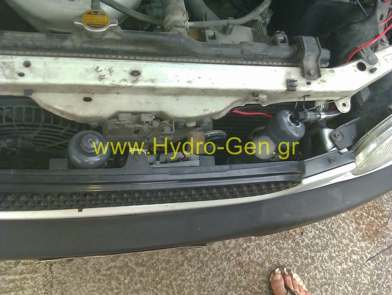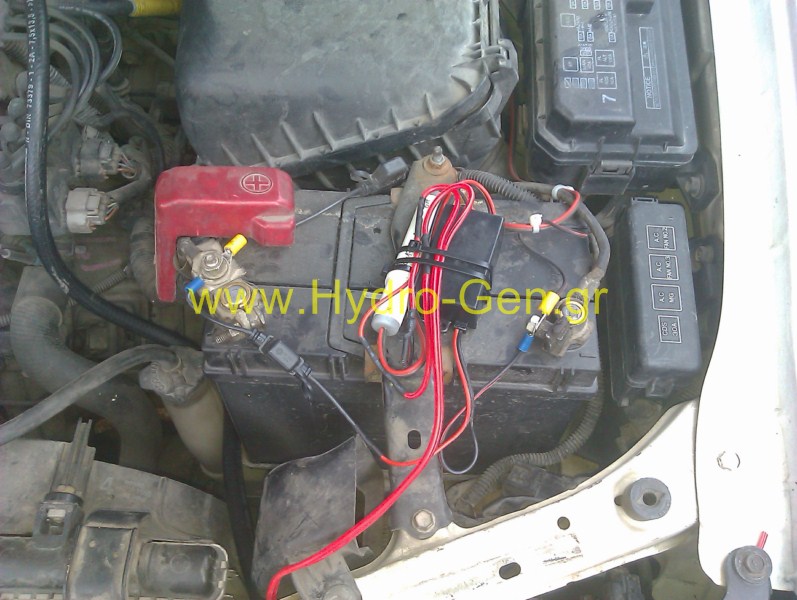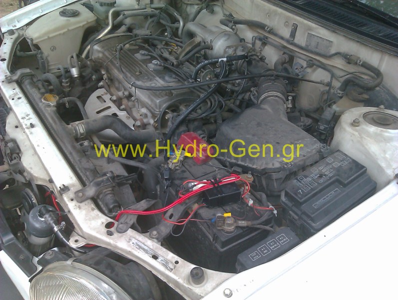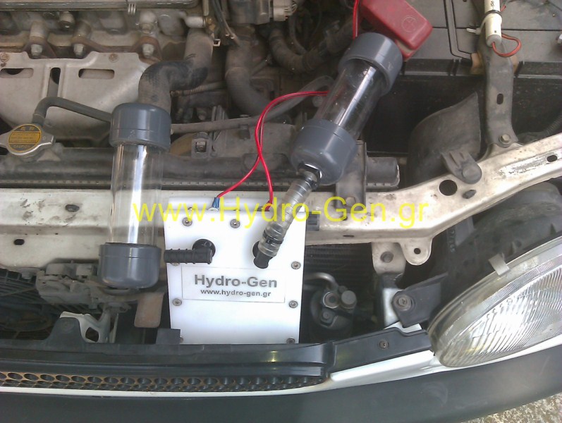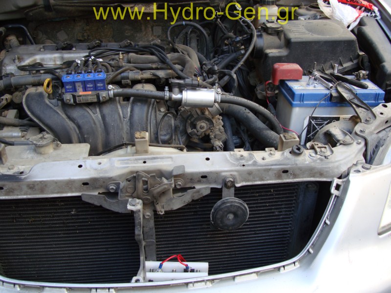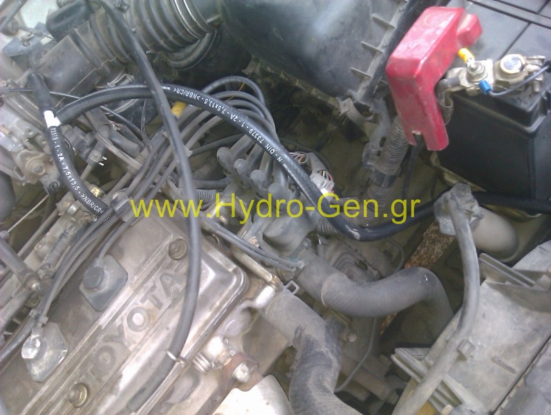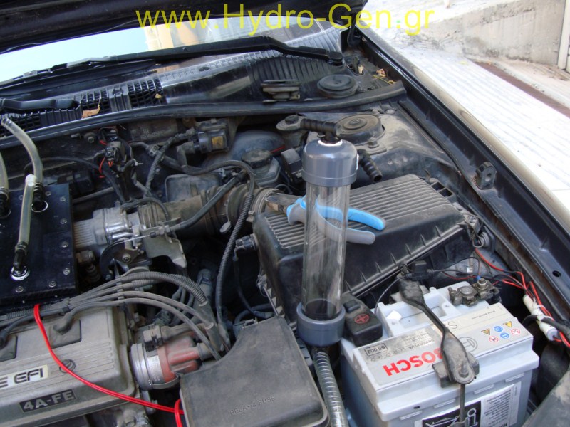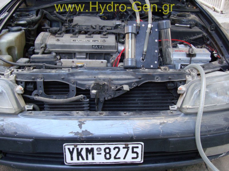 Η συσκευή Hydro-Gen με τα δοχεία αποθήκευσης ηλεκτρολύτη πριν την εφαρμογή της στο Toyota Corolla 1400 κυβ. εκ. του 1998