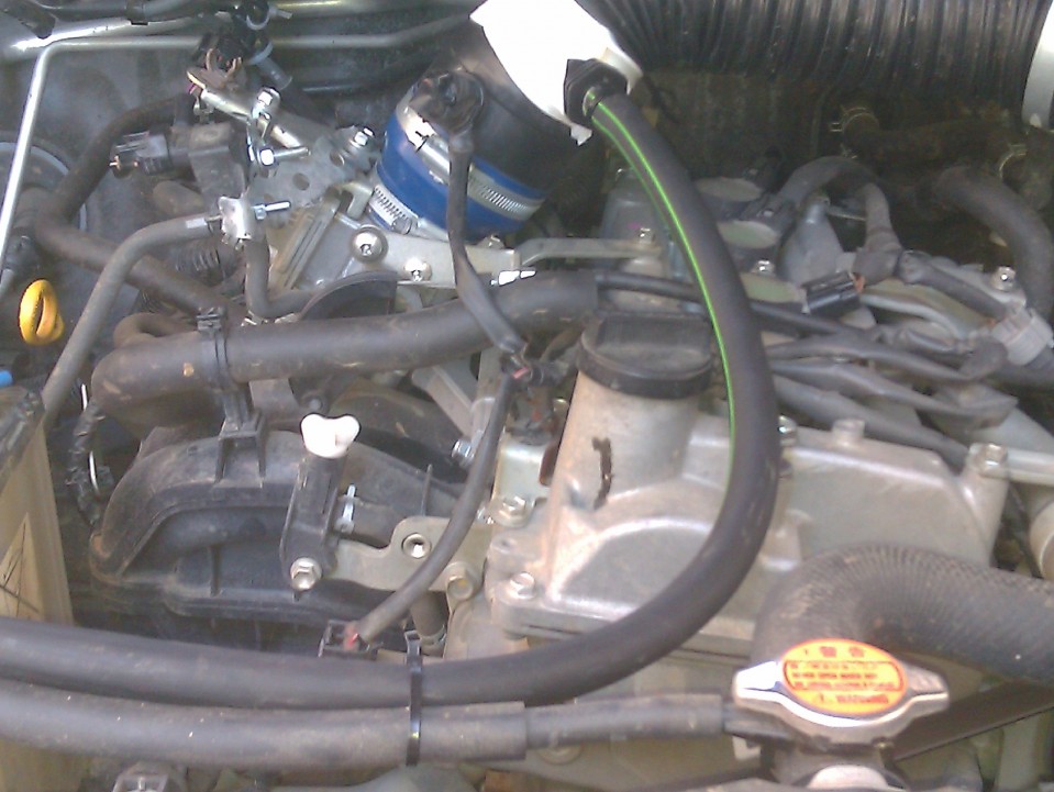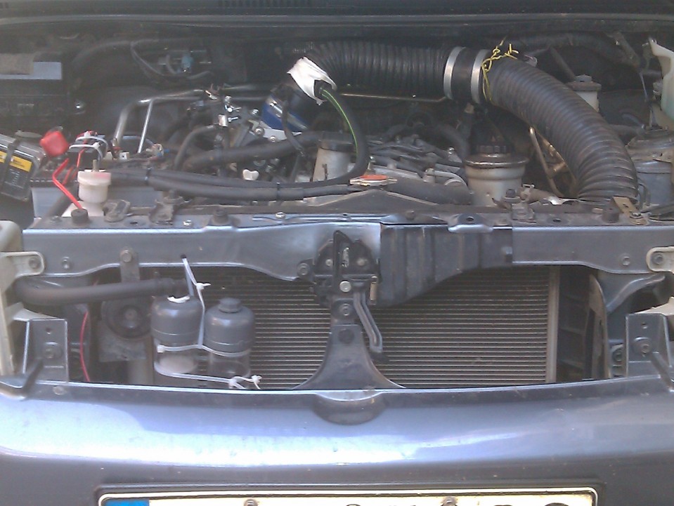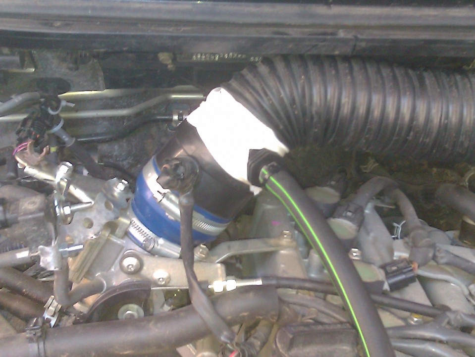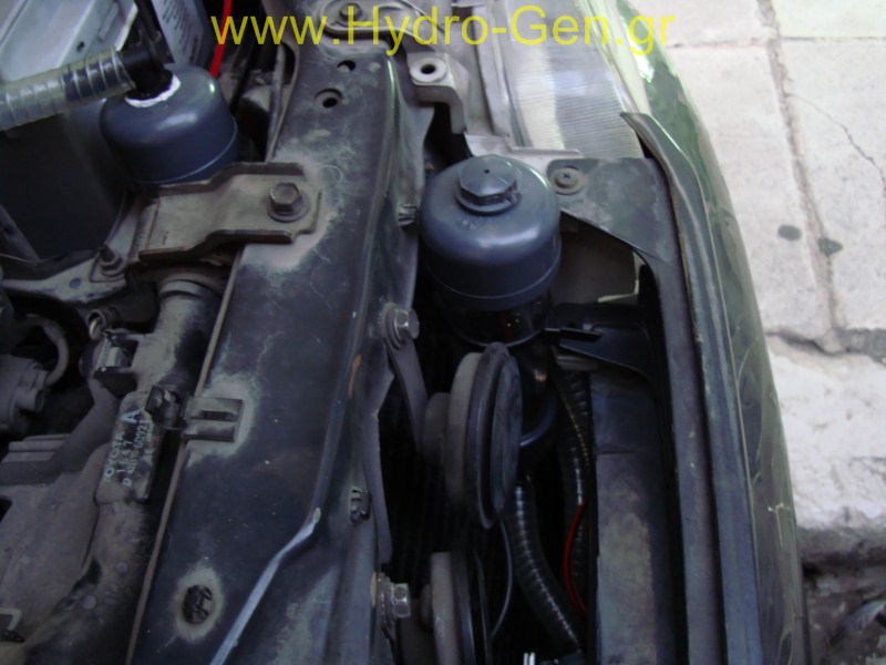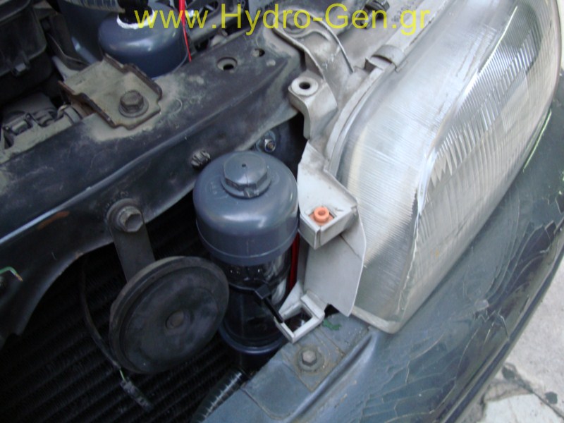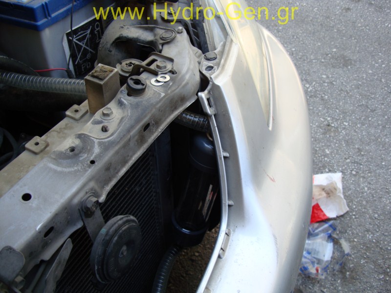 Στην εικόνα διακρίνεται ο λευκός σύνδεσμος (ταυ) που χρησιμοποιήθηκε για να συνδεθεί το σωληνάκι τροφοδοσίας του υδρογόνου με τον αεραγωγό του κινητήρα. Προτιμήθηκε η λύση να οδηγηθεί το υδρογόνο μέσω του σωλήνα αναθυμιάσεων του κινητήρα που απολήγει στον αεραγωγό, αποφεύγοντας μια νέα διάτρηση.