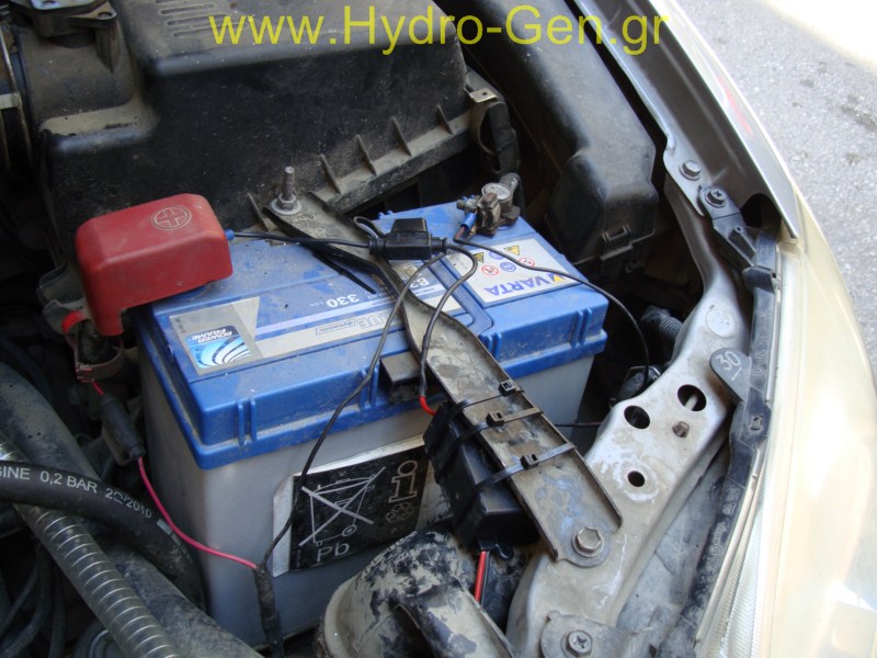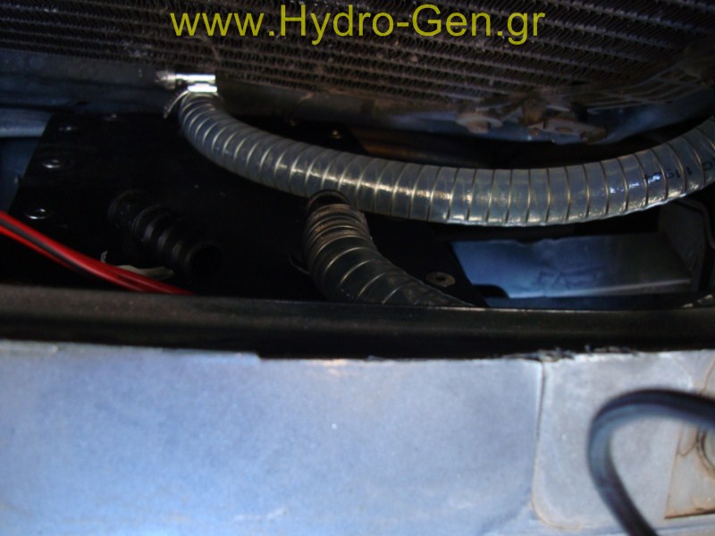Διακρίνεται ο σωλήνας που θα συνδέσει την έξοδο του υδρογόνου με το δοχείο που θα τοποθετηθεί στο χώρο του κινητήρα, μπροστά από την μπαταρία του οχήματος.