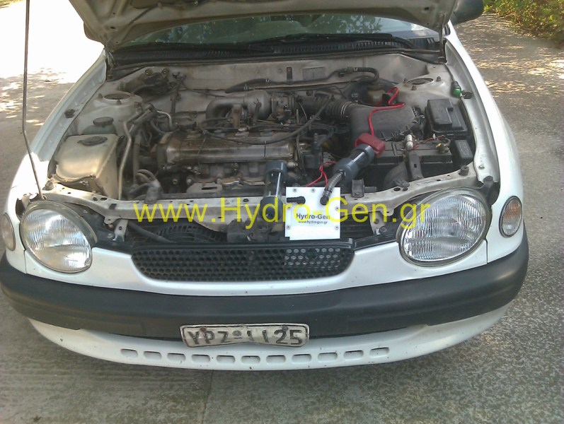 Toyota Corolla 1400 κυβ. εκ. του 2003 η επόμενη εφαρμογή. Το αυτοκίνητο κινείται και με αέριο. Η εφαρμογή της Hydro-Gen είχε σαν αποτέλεσμα να μειωθεί η κατανάλωση αερίου σε ποσοστό 25%. Στην κατανάλωση της βενζίνης το αυτοκίνητο παρουσίασε 32% οικονομία. Τα ποσοστά μας τα δήλωσε ο κάτοχος του, μετά από δοκιμές που πραγματοποίησε. Επαναλαμβάνω ότι τα τηλέφωνα, είναι στην διάθεση κάθε ενδιαφερόμενου. Οι τελευταίες μετρήσεις με νέα ρύθμιση έδωσαν οικονομία 35% στο αέριο και 30% στην βενζίνη!!!!!!!!