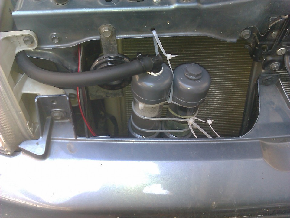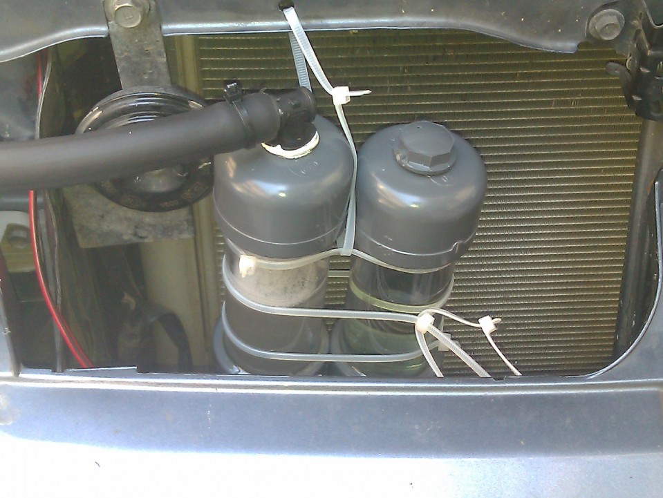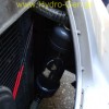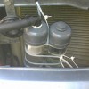Το δοχείο τοποθετημένο μεταξύ της μπαταρίας και της δοκού στήριξης του ψυγείου έτοιμο να συνδεθεί με τον αεραγωγό του κινητήρα.
